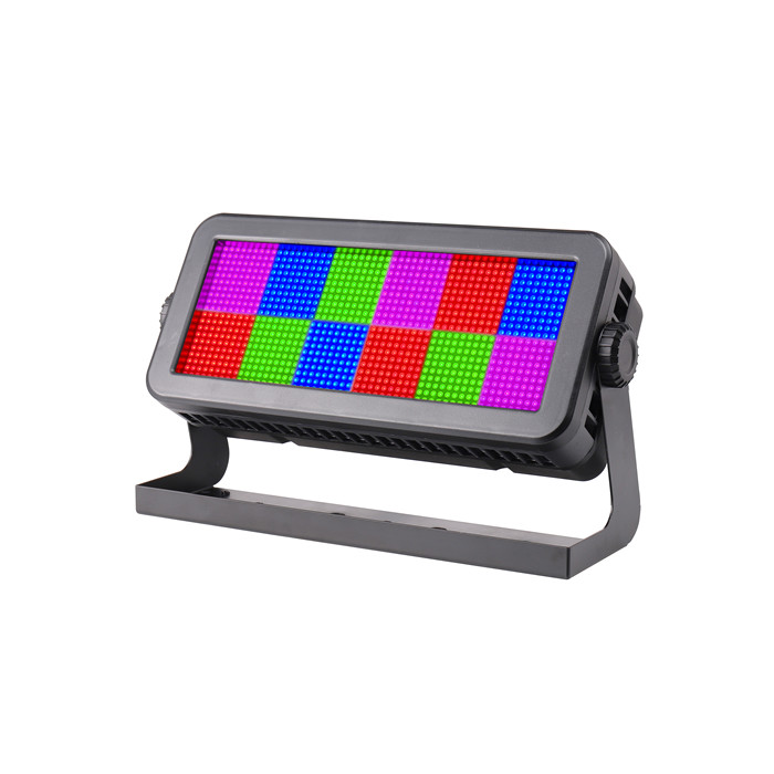 1080顆RGB十二段防水頻閃燈ML-1250C,最大的特點是高強勁高輸出的頻閃效果。由12塊可獨立控制的燈珠板組合而成,匹配紅綠藍三色(RGB),以達到卓越的染色效果;其出光角度達到120°,投射出來的光線更清晰明亮;能做到0~100%順滑調(diào)光。加上IP65防水標準,戶外演出也毫無后顧之憂,是演唱會、舞臺劇等大型演出的好伴侶。